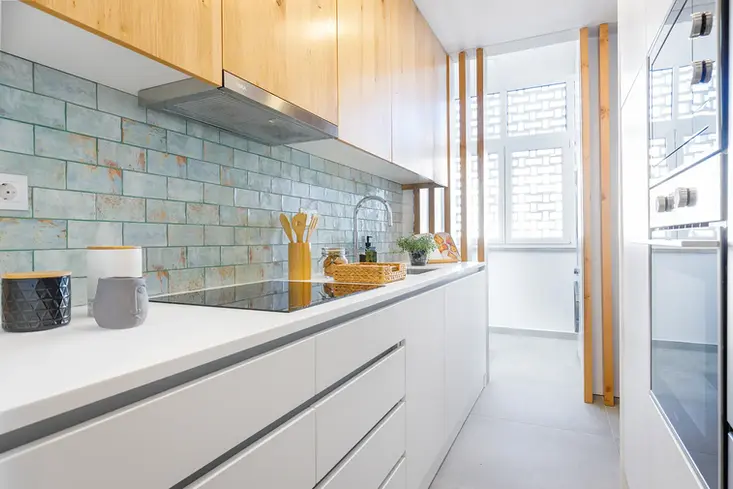 A intervenção privilegiou a funcionalidade e o conforto, recorrendo a materiais de elevada qualidade, janelas em PVC classe A+, ar condicionado Daikin e eletrodomésticos de gama superior.